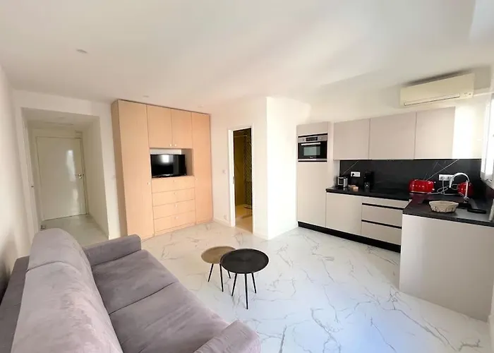 Joli Studio - Studio Neuf Terrasse Clim Wi-Fi 2 Min. Des Plages van 19 m^2 heeft een terras en ligt binnen 25 minuten loopafstand van Parc de la Pinède. Dit 1-slaapkamer appartement is gelegen op geringe afstand van Musee Peynet en verwelkomt gasten met handige schoonmaakfaciliteiten, zoals een wasmachine.